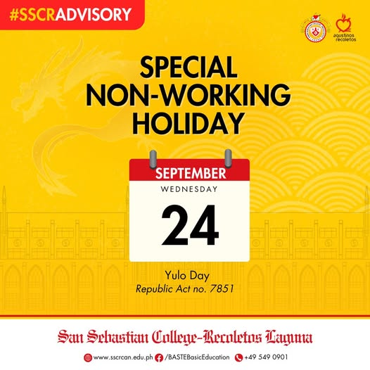 Due to the heavy rains from Typhoon Nando, please be advised that classes in all levels will shift to synchronous online classes tomorrow, September 23, 2025. On-site reporting and office operations will continue.